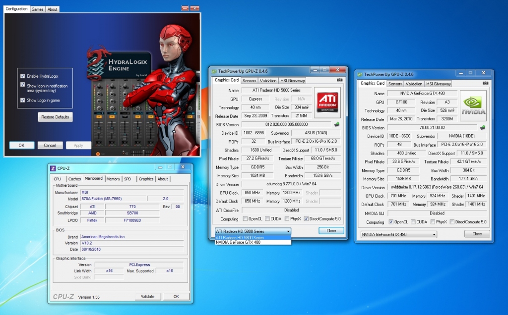 Per farlo abbiamo affiancato una scheda grafica ATI Radeon HD5870 con una NVIDIA GeForce GTX480, il top con singola GPU al momento disponibile sul mercato.