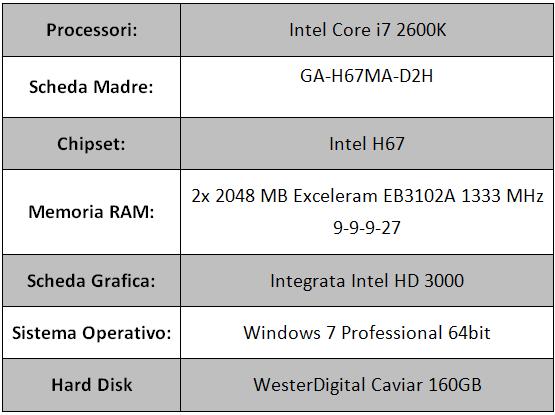 Visto che la scheda madre monta il chipset H67, il quale non consente overclock spinti della cpu, vista l’impossibilità di aumentare i moltiplicatori della tecnologia Turbo, in questa recensione abbiamo concentrato i nostri test per quantificare le potenzialità della stessa con cpu a default, comparandola con la ASUS P8P67 e la Intel DP67BG sui seguenti strumenti di benchmark: